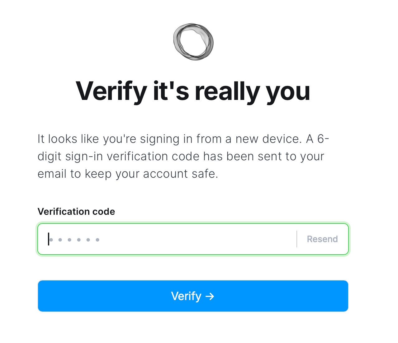 “Verify it’s really you. A 6-digit sign-in verification code has been sent to your email.”